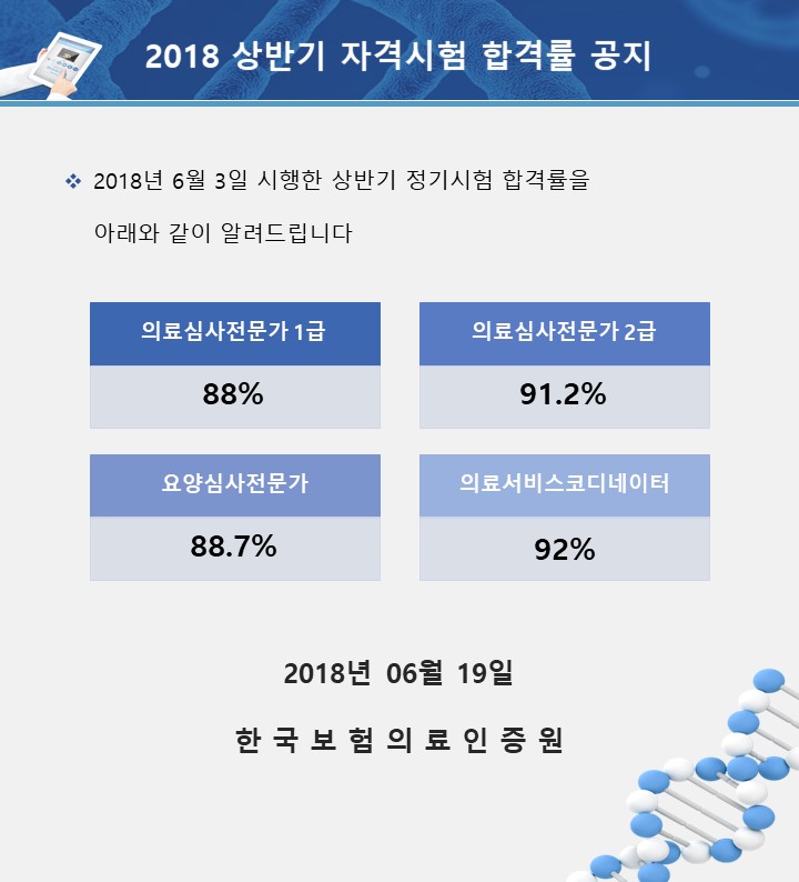 6월 3일 시행한 2018 상반기 자격시험 합격률을 공지합니다